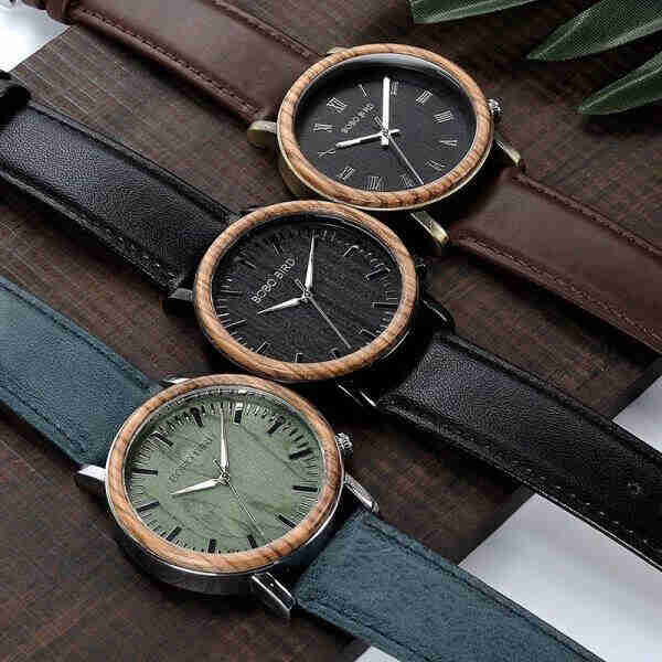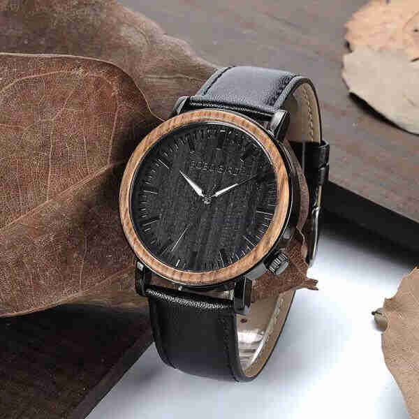 BOBO BIRD Reloj de madera y Metal para hombre, cronógrafo de cuarzo, con diseño especial, pulsera de cuero, sólido.